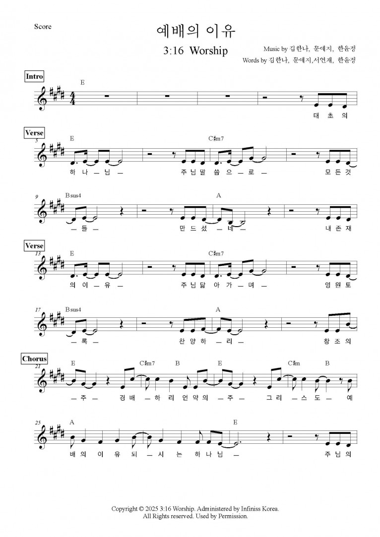뮤직타임 [MV,악보] 예배의 이유 - 3:16 Worship (Sanctification)