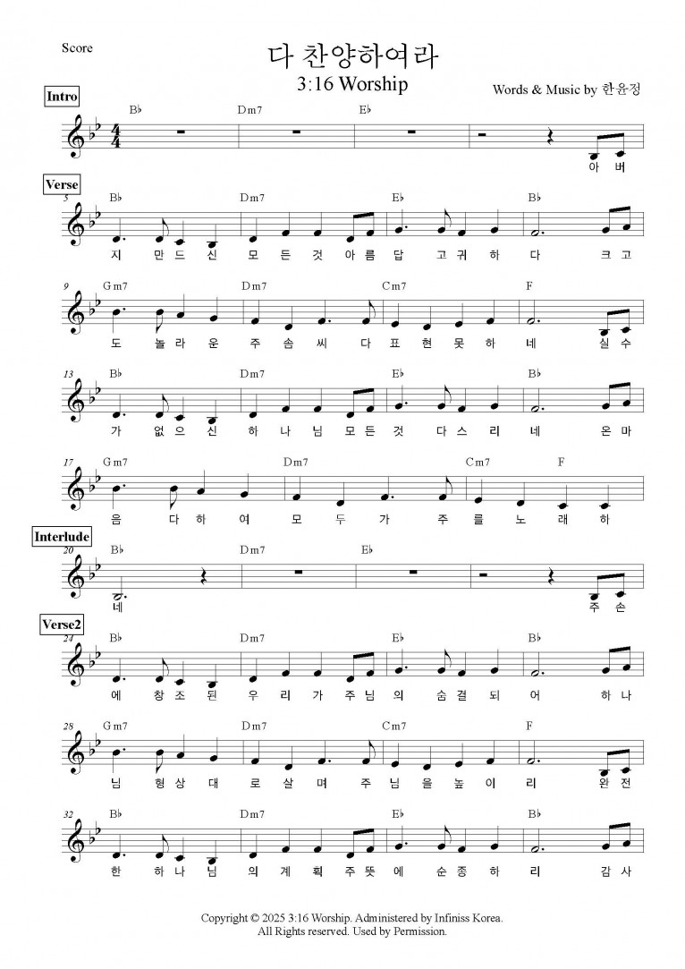 [MV,악보] 다 찬양하여라 - 3:16 Worship (Sanctification)