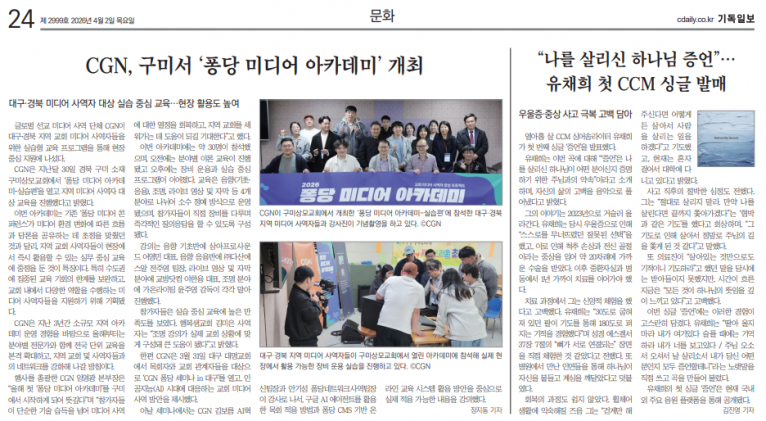 [기사] “나를 살리신 하나님 증언”… 유채희 첫 CCM 싱글 발매(기독일보)